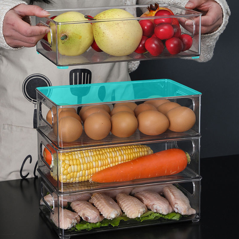 Caja de Almacenamiento para Refrigerador, Organizador de Cajones de Cocina de Plástico, Apta para Alimentos Congelados, PET Sellado, Gran Capacidad, Cajas Transparentes para Mantener la Frescura