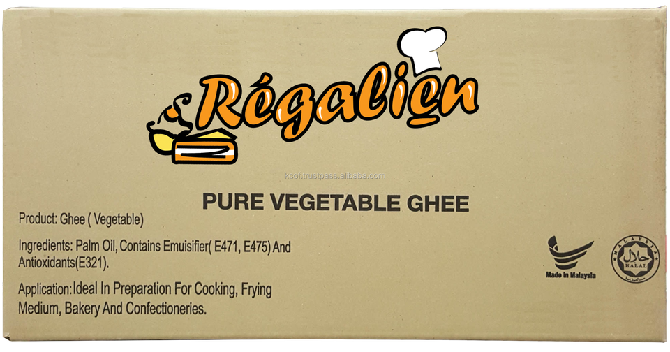 Ghee Vegetal Regalien de Grado Premium, Temperatura de Fusión 33-38 Grados Celsius, 99.9% de Contenido de Grasa, Sin Trans, Halal, Certificado ISO, HACCP y GMP