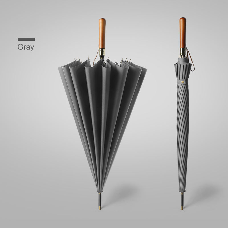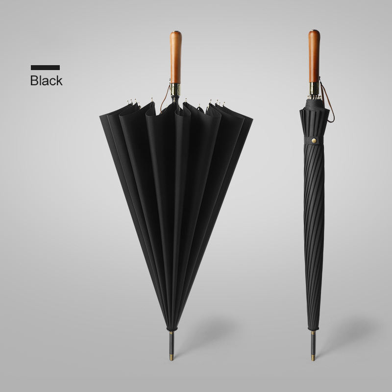Construcción de 16 costillas: Con 16 costillas, el paraguas ofrece un dosel más grande y estable, proporcionando mejor cobertura y protección tanto del sol como de la lluvia.