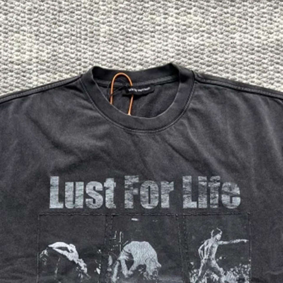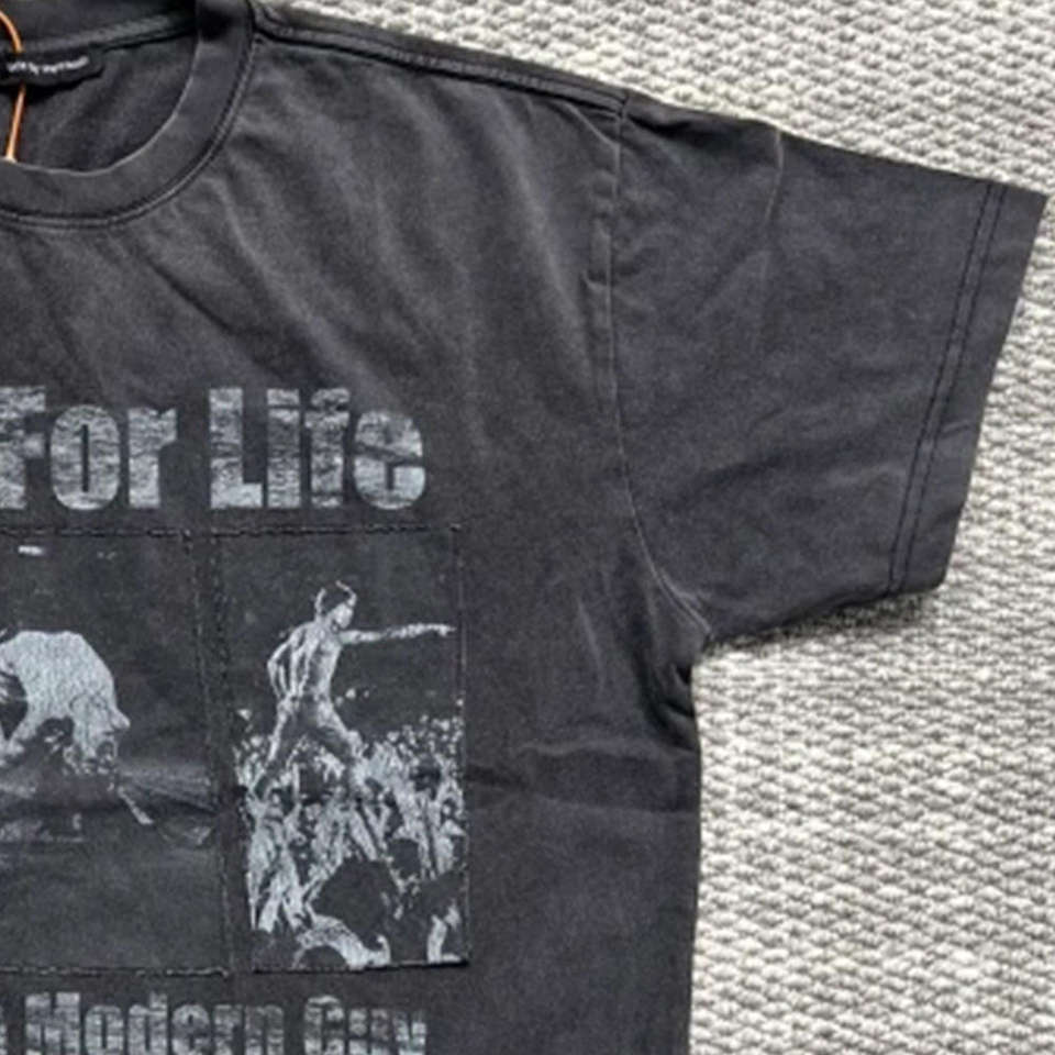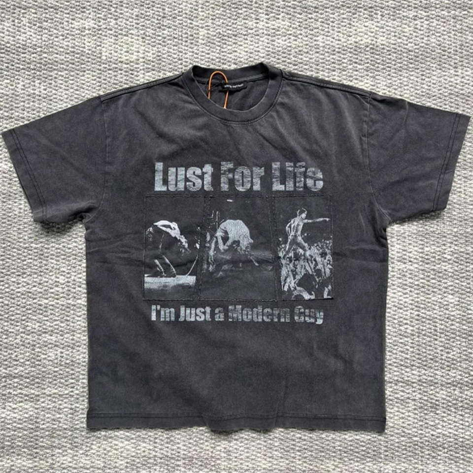 Camiseta de Algodón Premium de Punto Grueso, Corte Regular, Estilo Desgastado, con Parche Estampado Vintage, Ecológica y Personalizada para Hombre