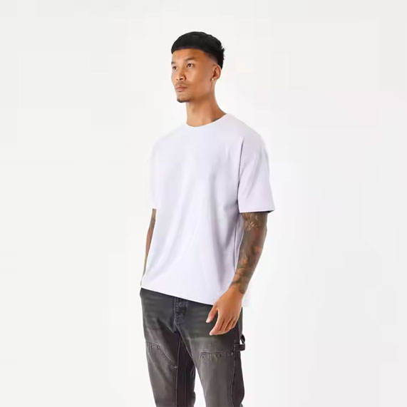 Camiseta de Hombre de Corte Regular, 100% Algodón, Calidad Premium, Diseño con Hombros Caídos, Estampado Moderno a Cuadros, Cuello Redondo, Tejido Jersey, 300g