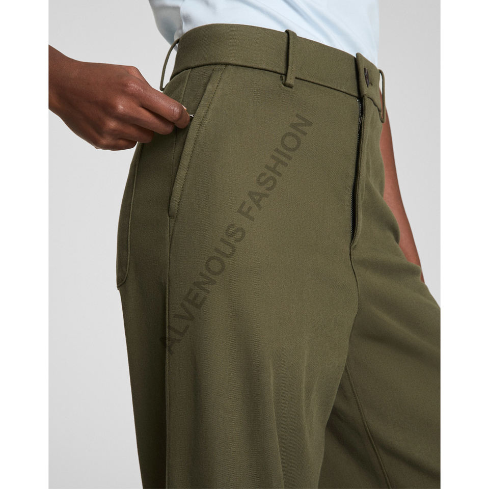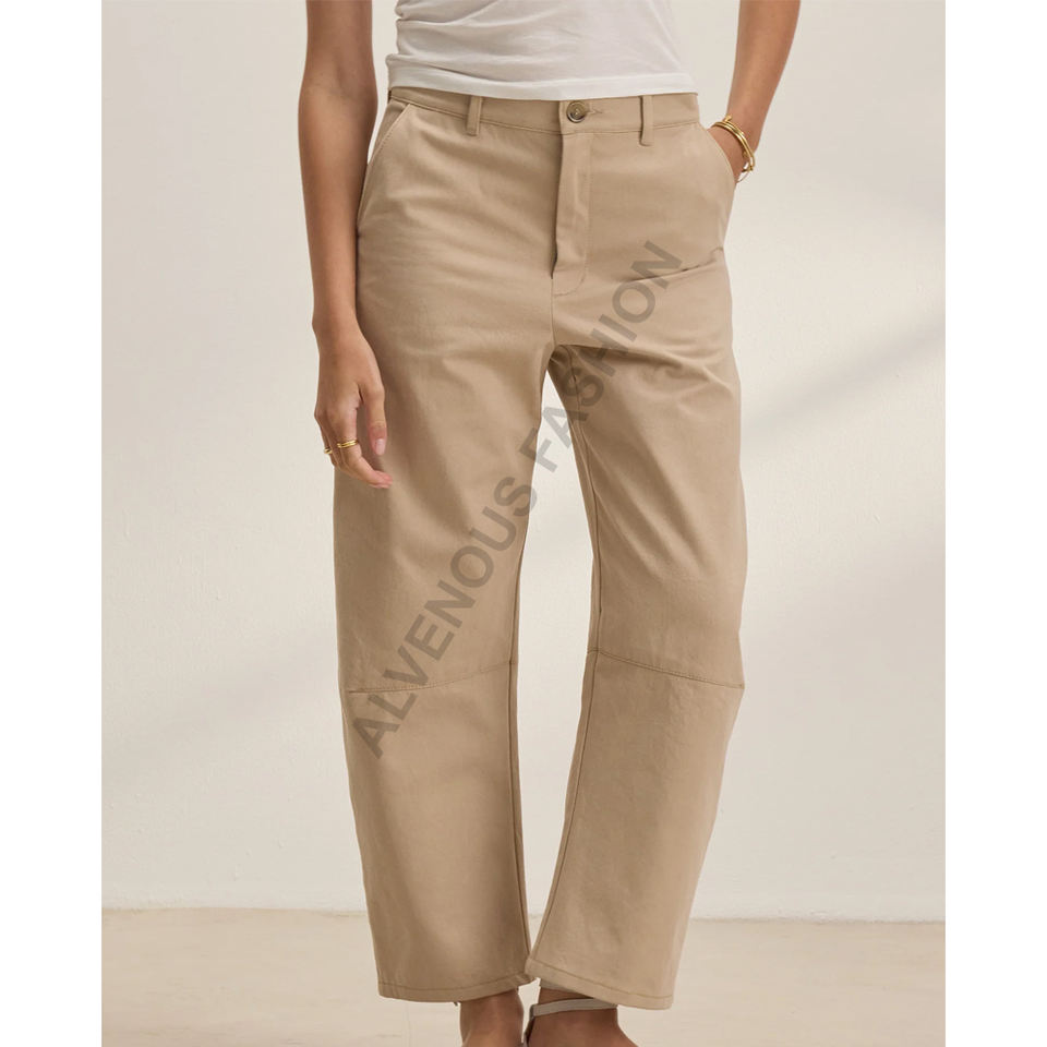 Pantalones de Sarga Tejida Antiarrugas de Color Liso de Corte Regular para Primavera, de Alta Calidad, Casuales para Mujer, con Estampado por Descarga, 100% Algodón