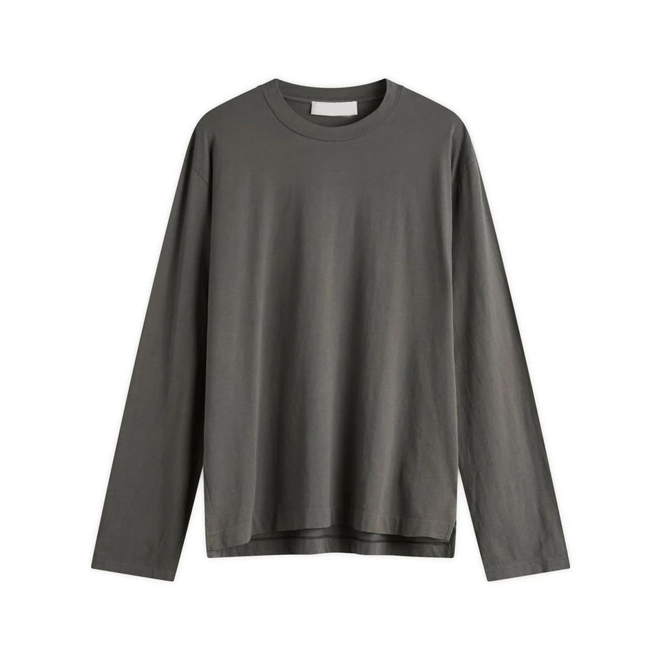 Camiseta de manga larga para hombre, de algodón de alto gramaje, corte regular estructurado, lisa, con silueta definida, caída pulida y tejido bordado.