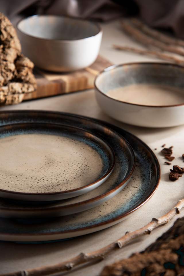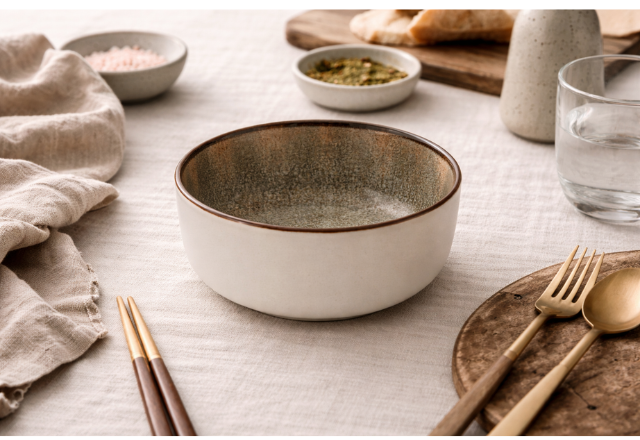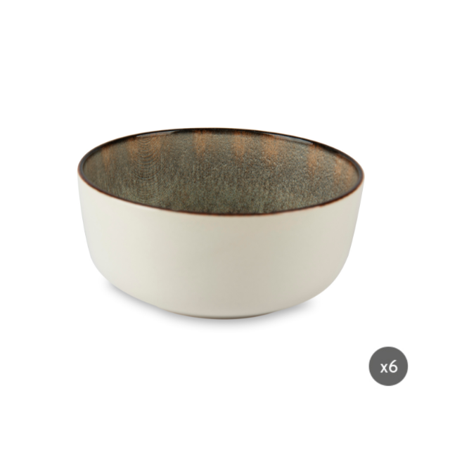 Juego de 6 Tazones Redondos de Cerámica para Servir, con Esmalte Reactivo, Diseño Rústico Minimalista, Relieve Brillante, Decoración Digital Zeus Excelsa