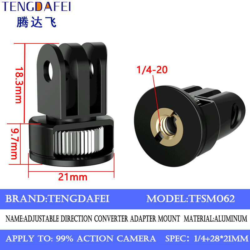 Reforzado 360 ajustable Anti-reverso cabeza de tres tarjetas a 1/4 tornillo adaptador de montaje de trípode de cámara para Gopro11