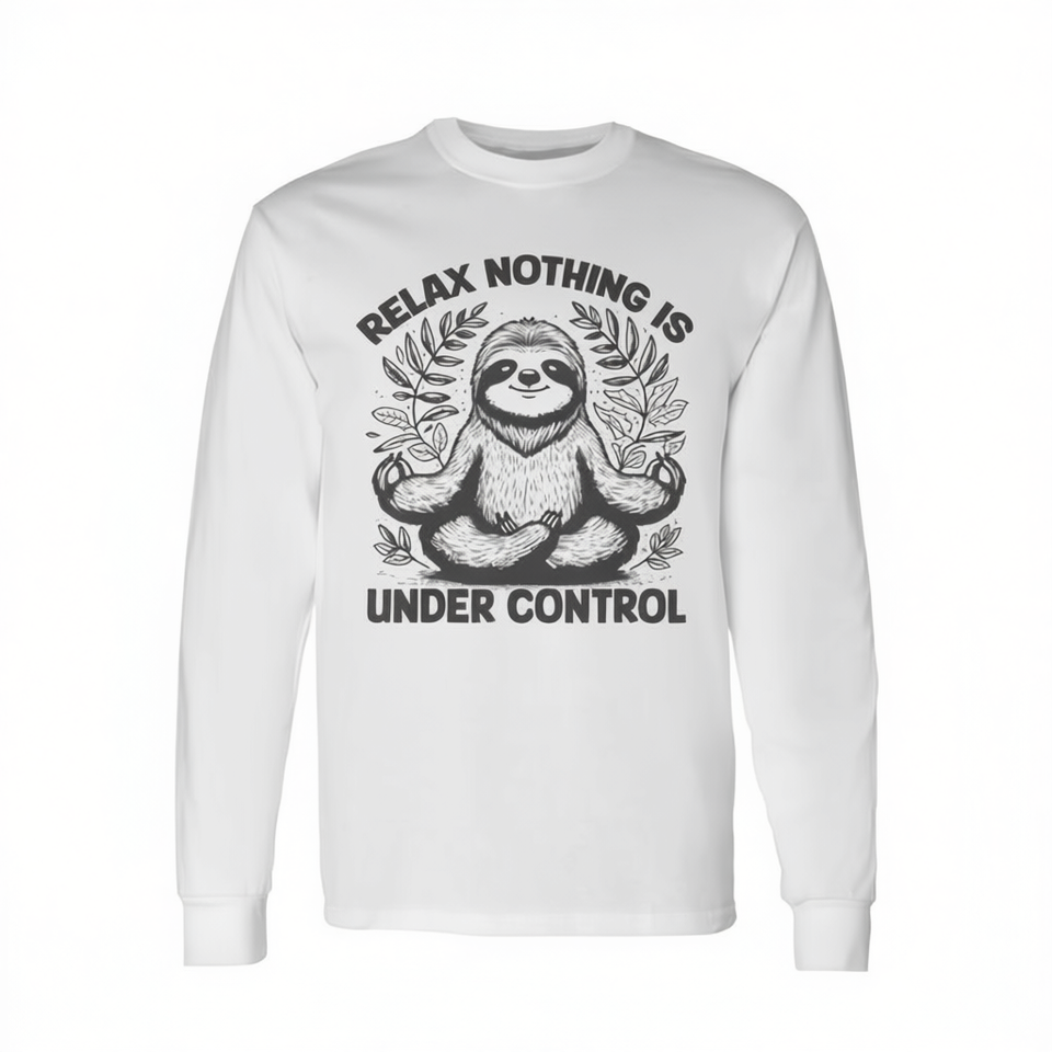 Camiseta de manga larga con estampado de yoga y lindo perezoso, Relax Nothing Is Under Control