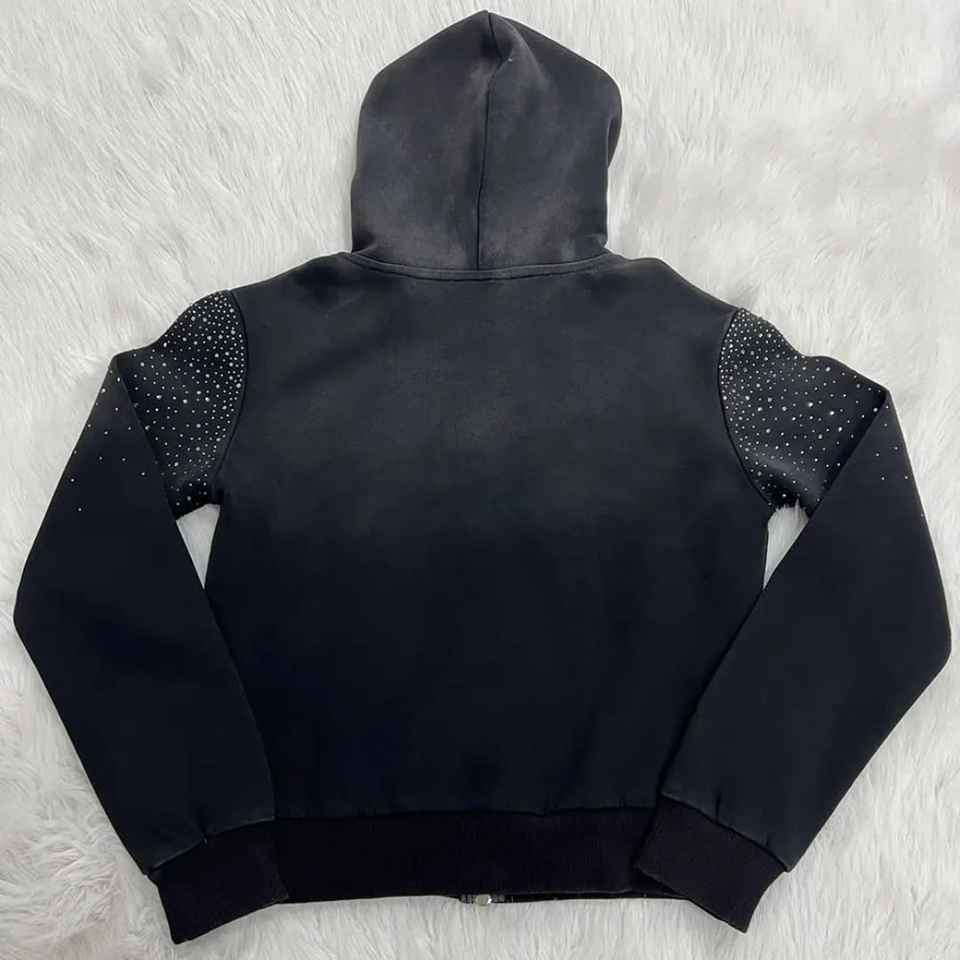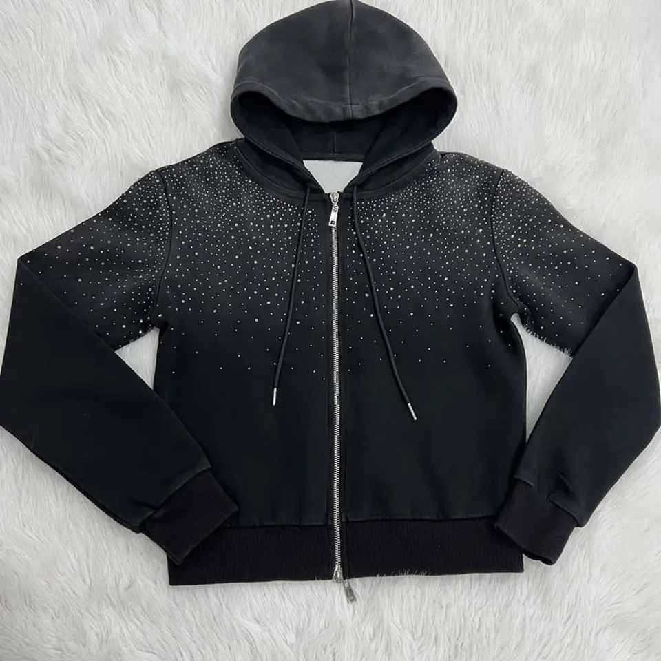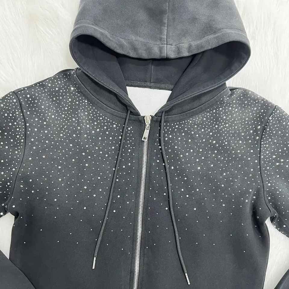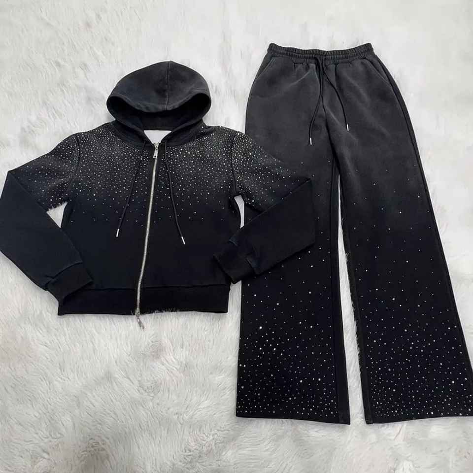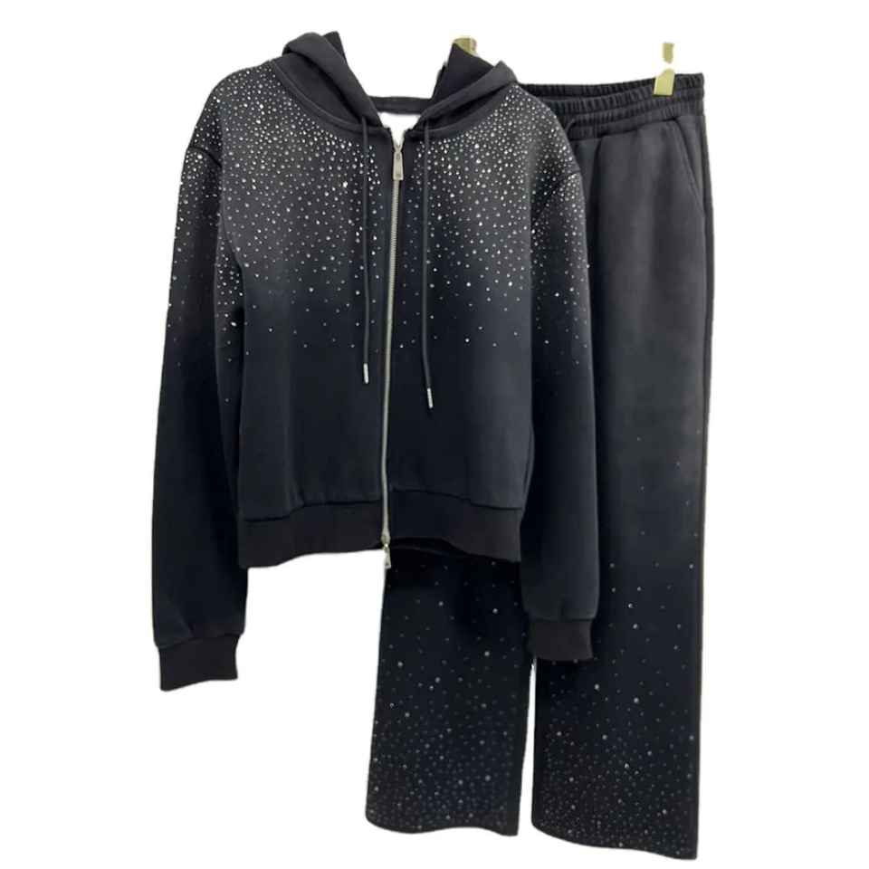 Conjunto Deportivo con Pedrería de Corte Holgado para Uso Diario, Sudadera con Capucha y Pantalones Deportivos Brillantes de Primera Calidad