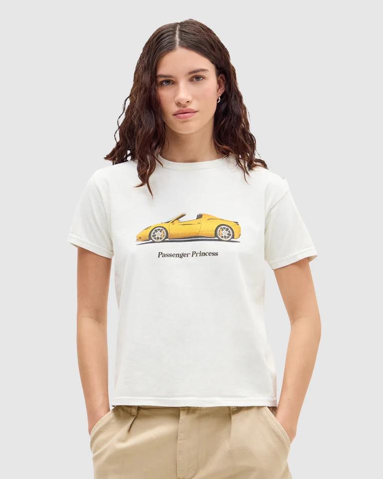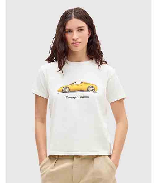 Camiseta Holgada de Verano Ecológica con Estampado de Logotipo Frontal de Auto para Mujer