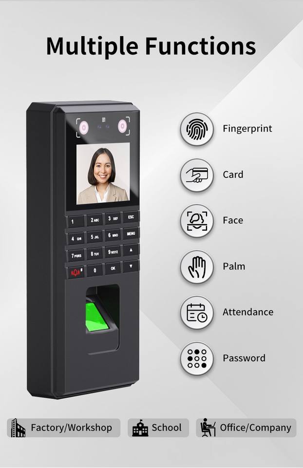 Nombre del producto:Dispositivo confiable de registro de tiempo biométrico con soporte para huella de palma