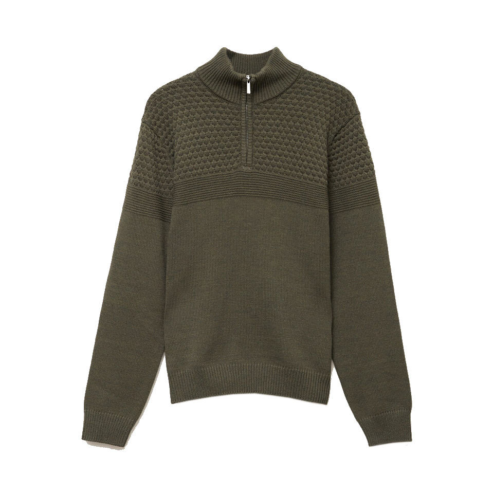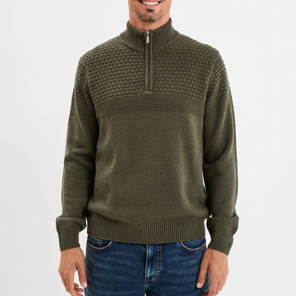 Product Name:Creeks men's zip-up trucker-neck sweater in khaki green
