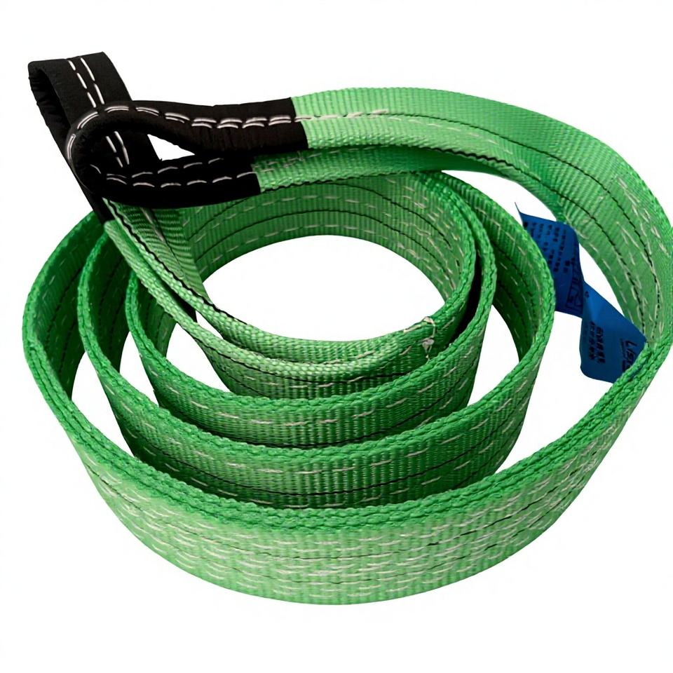 Eslinga Plana de Poliéster de Alta Resistencia con Dos Lazos y Accesorios de Acero para Elevación y Amarre Marino