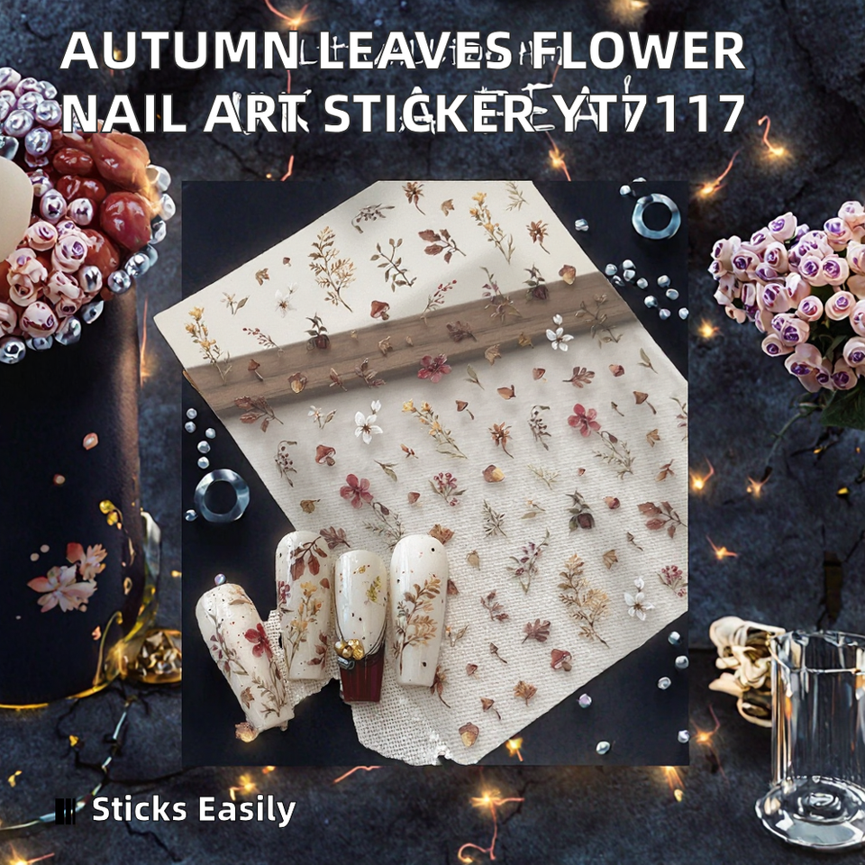 Pegatinas 3D Autoadhesivas para Uñas con Diseño de Hojas Secas y Desgastadas en Colores Otoñales Feng Shui, Decoración Dulce para Chicas