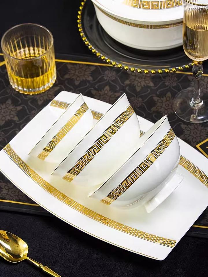 Juego de vajilla de lujo europeo de porcelana fina con diseño de relieve, estilo chino, 60 piezas, nuevo.