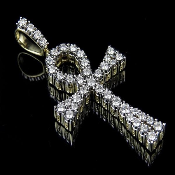 Colgante de Cruz religiosa en plata de ley S925 con diamante de moissanita de corte brillante redondo para unisex