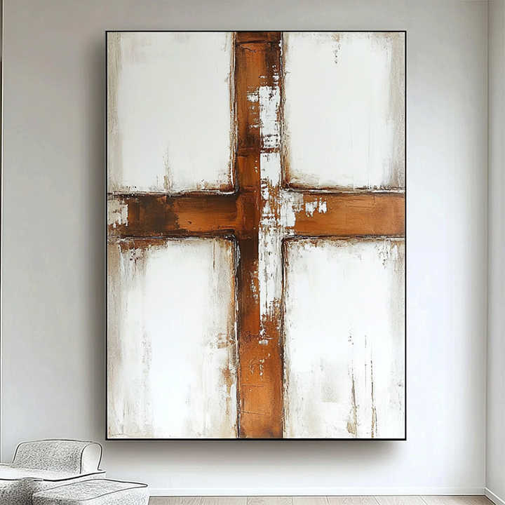 Decoración religiosa hecha a mano Beige marrón abstracto Jesús pintura versículo de la Biblia regalo cristiano Cruz arte de la pared