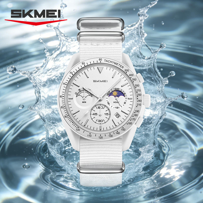 Reloj de Cuarzo Blanco Puro con Logotipo Personalizado OEM, 3ATM Resistente al Agua, Esfera Redonda, 6 Agujas, Correa de Nailon Clásica para Hombre
