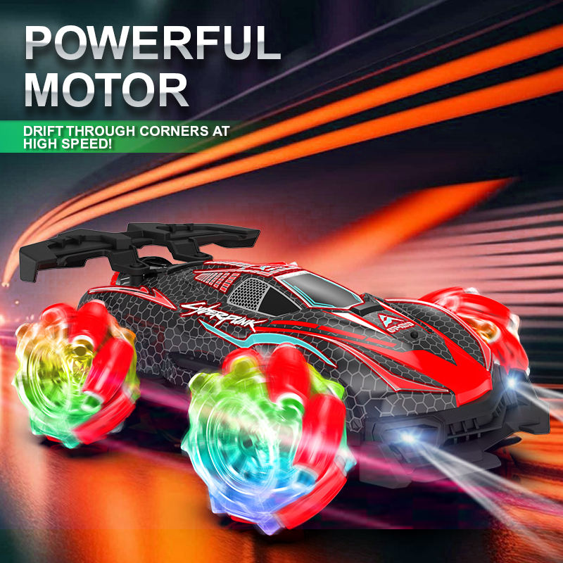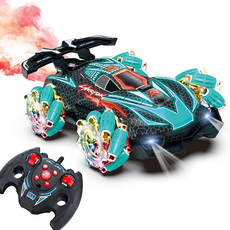 Coche de Carreras con Control Remoto de 4 Canales, con Spray, Derrape Lateral, Luces Nocturnas Coloridas, Efectos Especiales, 2.4G RC, Juguete para Niños, con Cargador
