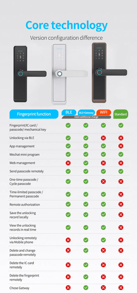 Huella dactilar + contraseña + tarjeta + llave + aplicación TTLock