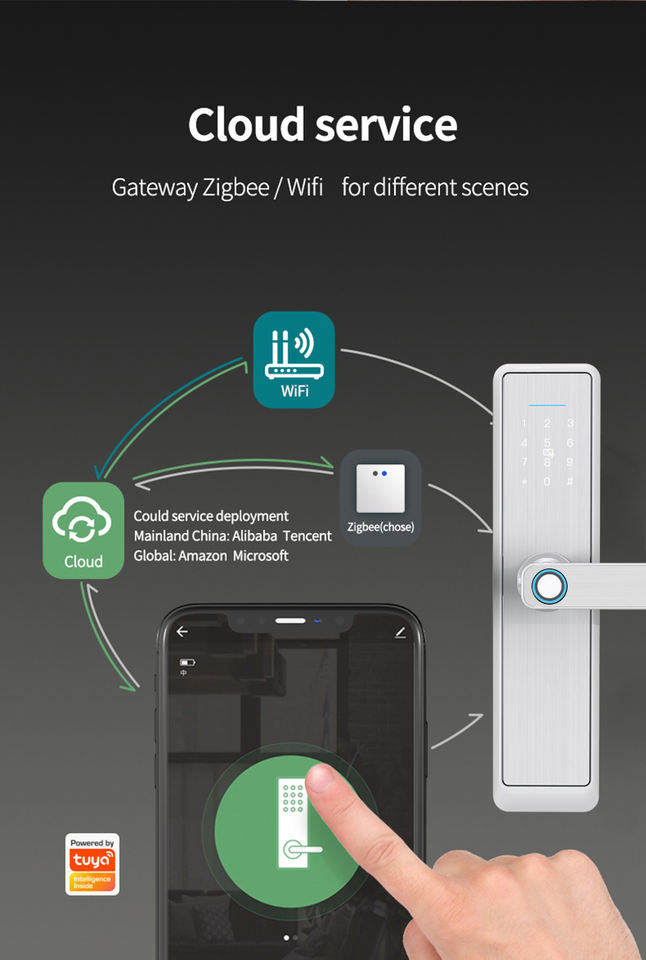Huella dactilar + contraseña + tarjeta + tecla + aplicación tuya