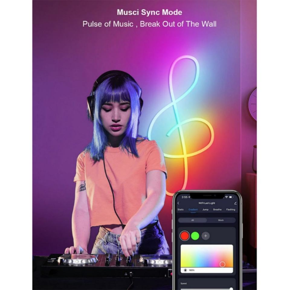 Tira de Luces LED de Neón RGB con Control Remoto IP67 5V USB, Control Inteligente por Aplicación, Sincronización con Música, Color de Ensueño