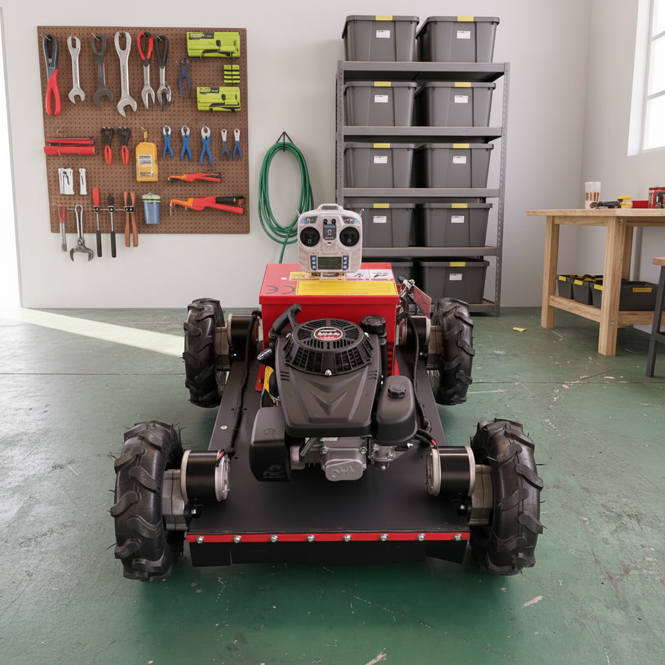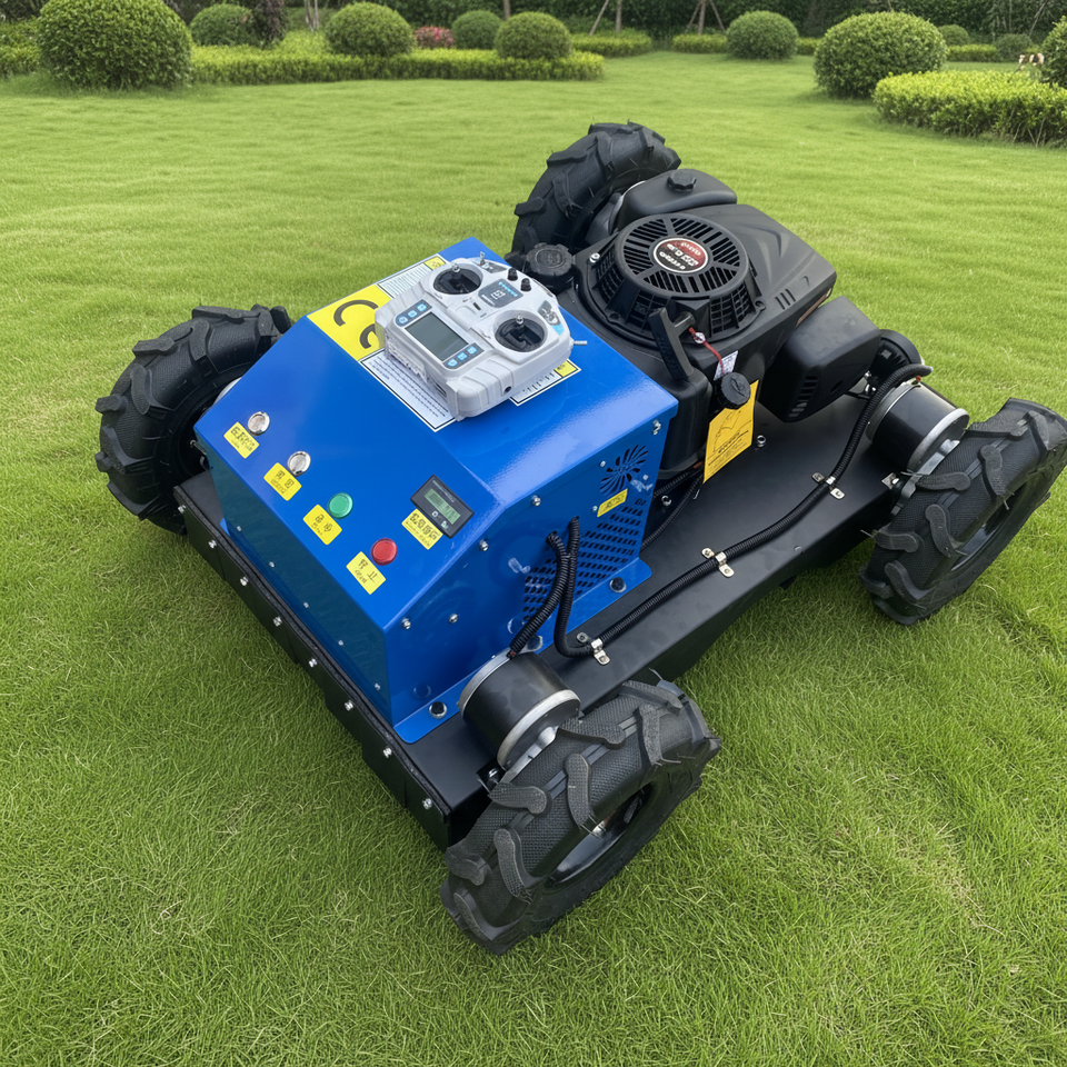 Cortadora de Césped Robótica Autopropulsada de Gasolina de 7.5HP con Control Remoto Industrial para Uso en Huertos y Todo Terreno