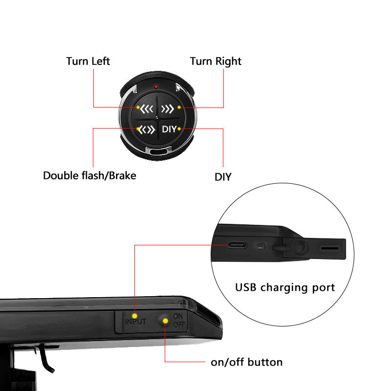 Nombre del producto:Luz de la cola de bicicleta control remoto señal de giro led