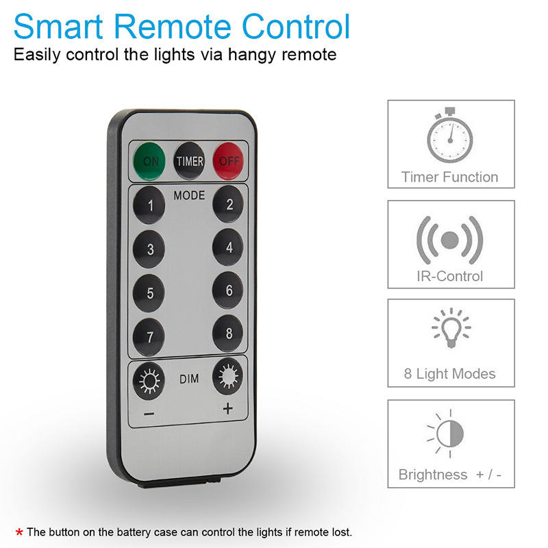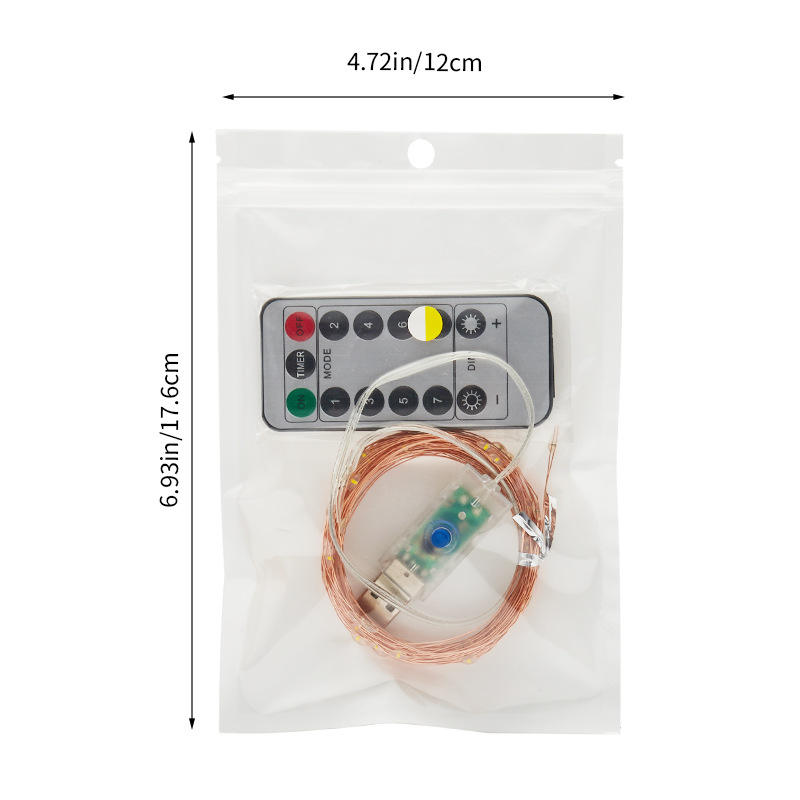 Guirnalda de Luces LED con Cable de Cobre USB, Control Remoto, 8 Funciones, Bajo Voltaje, Decoración Navideña con Forma de Estrella