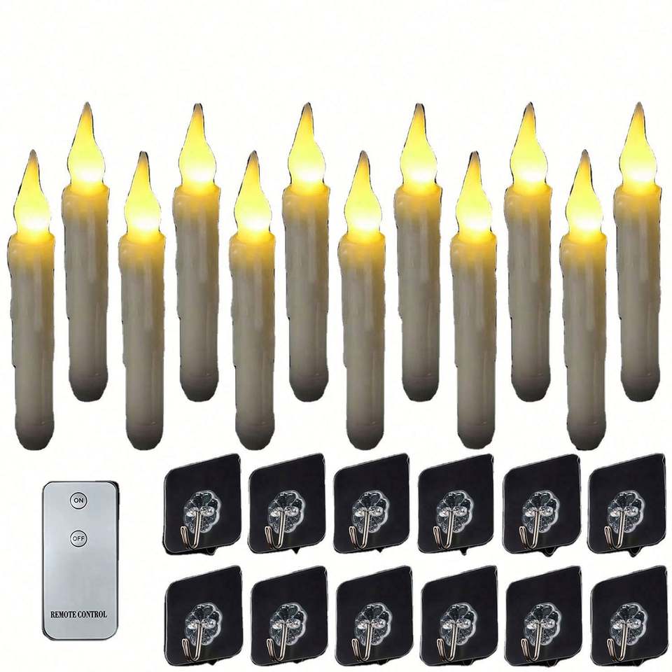 Velas Colgantes Mágicas con Control Remoto, Velas Flotantes con Varita, Luz Cálida Parpadeante, LED sin Llama, con Batería, Paquete de 12