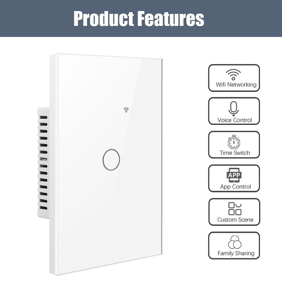 Interruptor inteligente remoto Tuya 16A compatible con la app Tuya; interruptor táctil inteligente de 1/2/3/4 vías, compatible con Alexa y Google Home