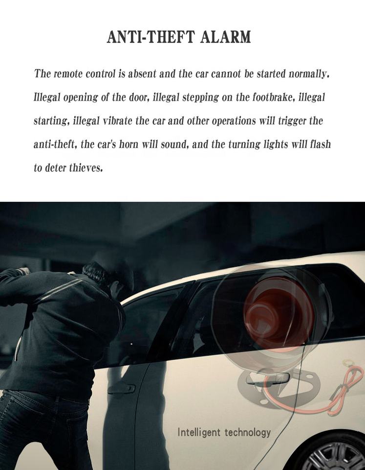 Motor de parada de arranque remoto PKE Entrada sin llave Alarmas de coche Sistema de desbloqueo de bloqueo central automático con sensor de vibración