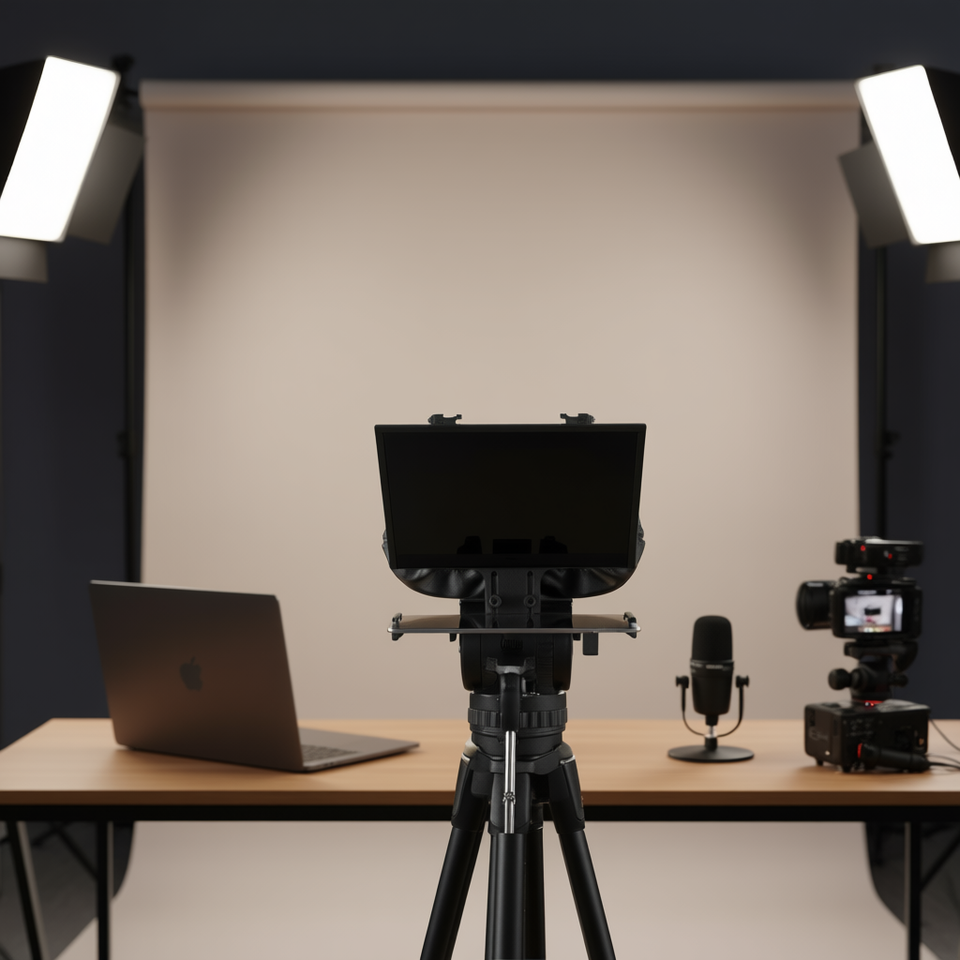 Teleprompter Remoto de 13 Pulgadas Tipo Piso, Equipo de Transmisión en Vivo de Aleación de Aluminio para Cámara Web y Teléfono Inteligente