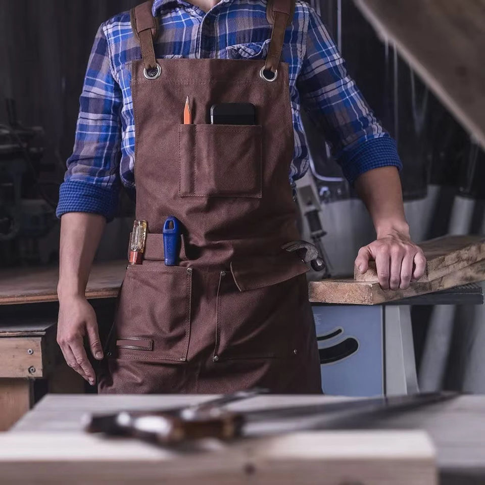 Delantal de Cuero Desmontable con Logotipo Grabado a Láser Personalizado, Cierre a Presión, Manga Corta, Transpirable y Cómodo para Venta en Línea