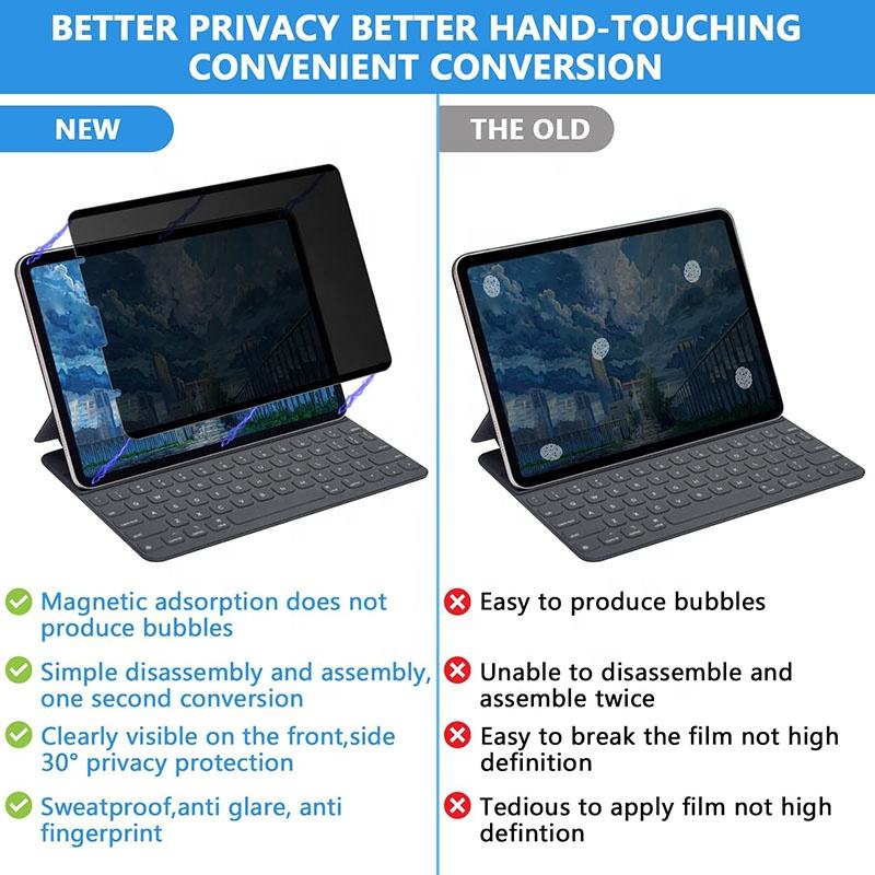 Protector de pantalla magnético extraíble y reutilizable para ipad, protector de pantalla de privacidad de 10,9 pulgadas para iPad Air 4/Air 5 y iPad Pro de 11 pulgadas (2020/2022)
