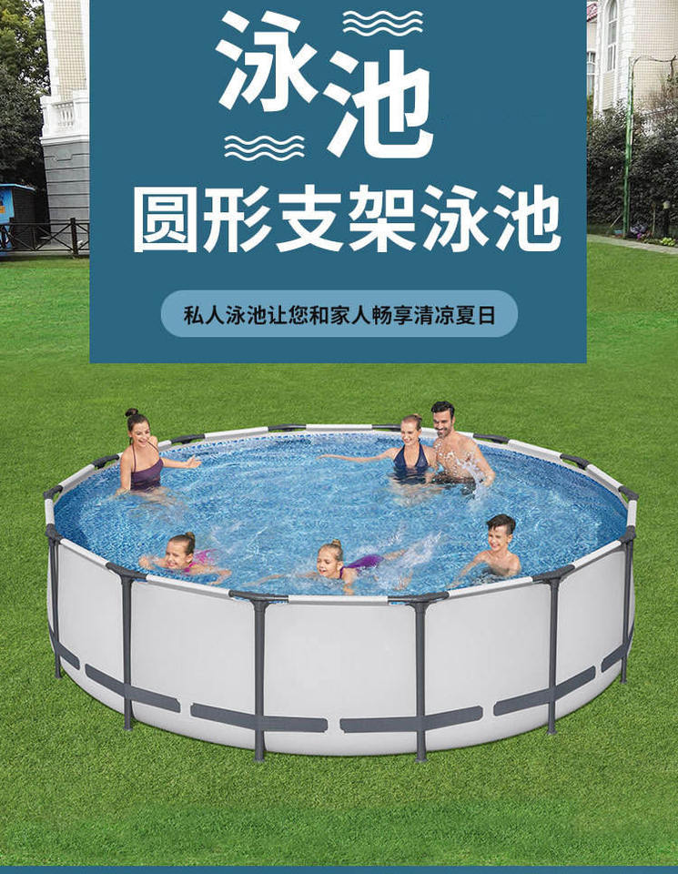 Piscina Desmontable Redonda con Marco Estructural de PVC Pro Max de 14' x 33" y 530 Galones, con Bomba de Filtro Plegable