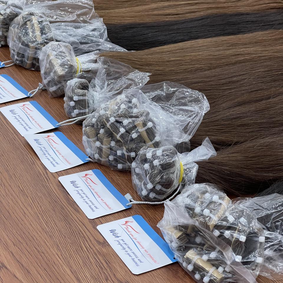 Cabello humano Remy, cinta recta en extensiones, cabello vietnamita natural suave y sedoso, venta al por mayor, suave y duradero