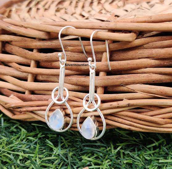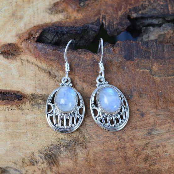 Pendientes de Piedra Lunar Renovada, Latón Chapado en Oro, Joyería Vintage Hecha a Mano, Certificado IGI, Surgyan Saini, Temporada de Verano, Boda