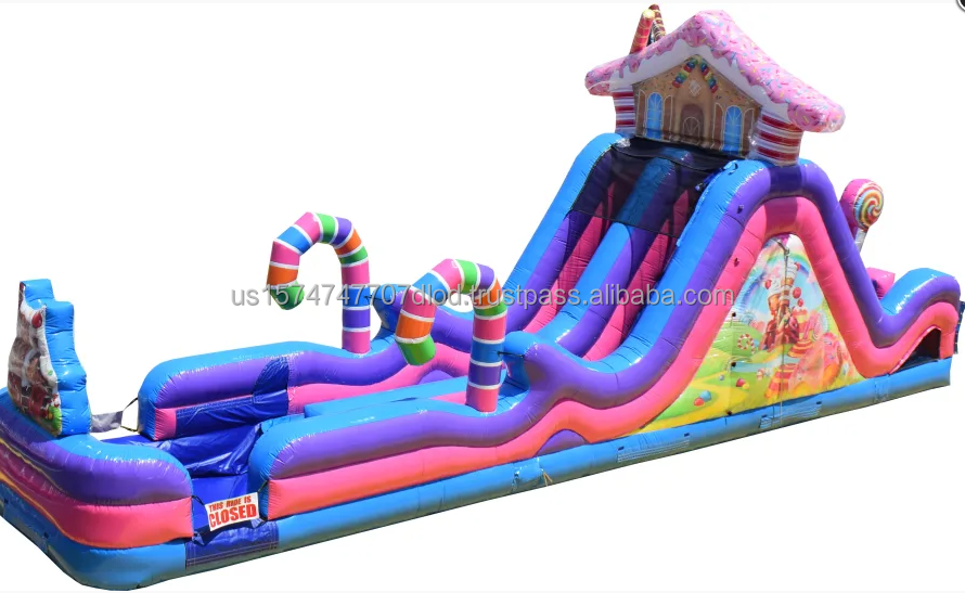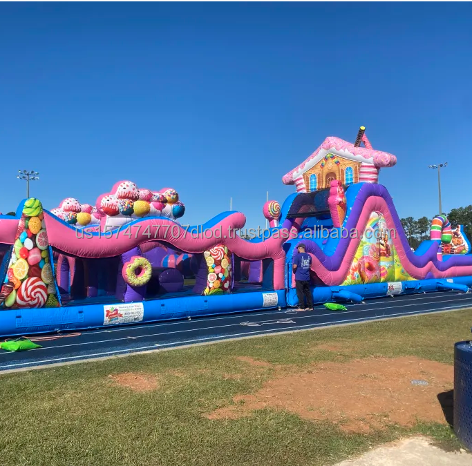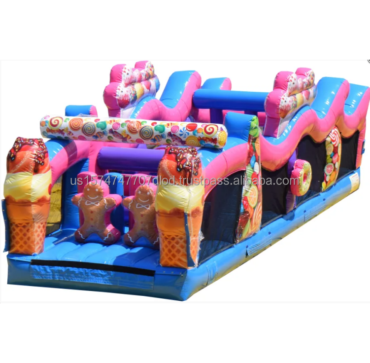 Carrera de obstáculos inflable de alquiler con temática de dulces de bastón divertido para parques de atracciones y castillos inflables
