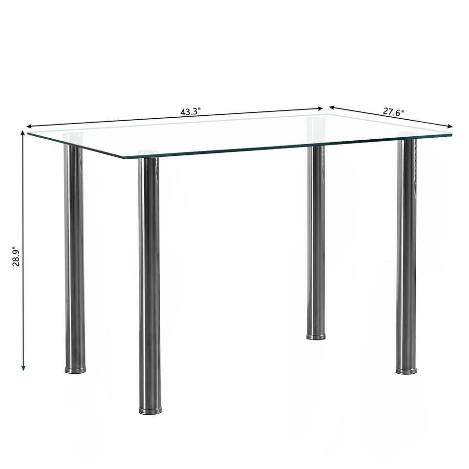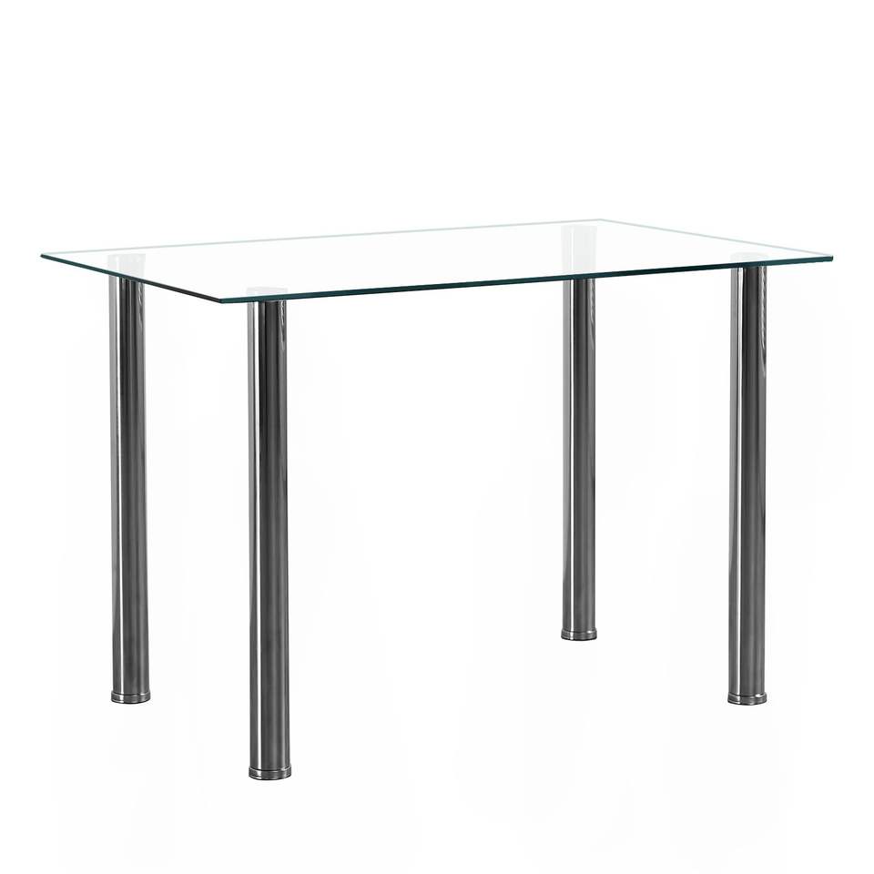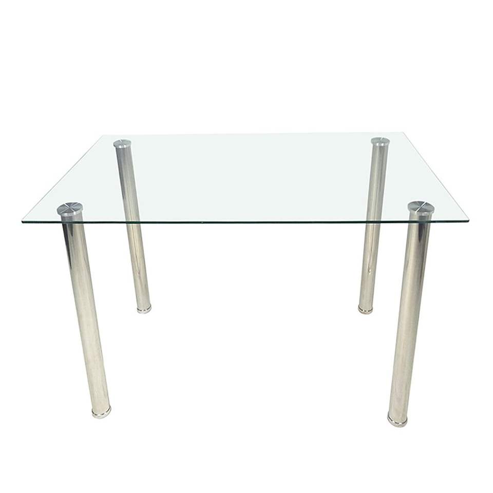 Mesa de Comedor Rectangular Simple de Vidrio Transparente para 4 Personas, Reemplaza 65542081, con Patas de Acero Inoxidable y Vidrio Templado, Tamaños 110, 70, 75 cm