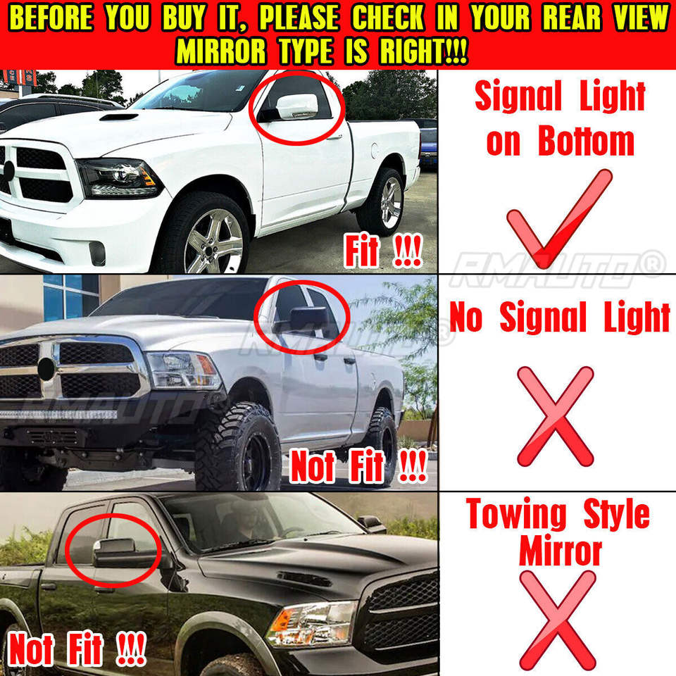 Carcasas de Repuesto para Espejos Retrovisores de Automóviles para Dodge RAM 1500 2013-2018 con Luz de Giro 68096199AF 68096198AH Negro Brillante