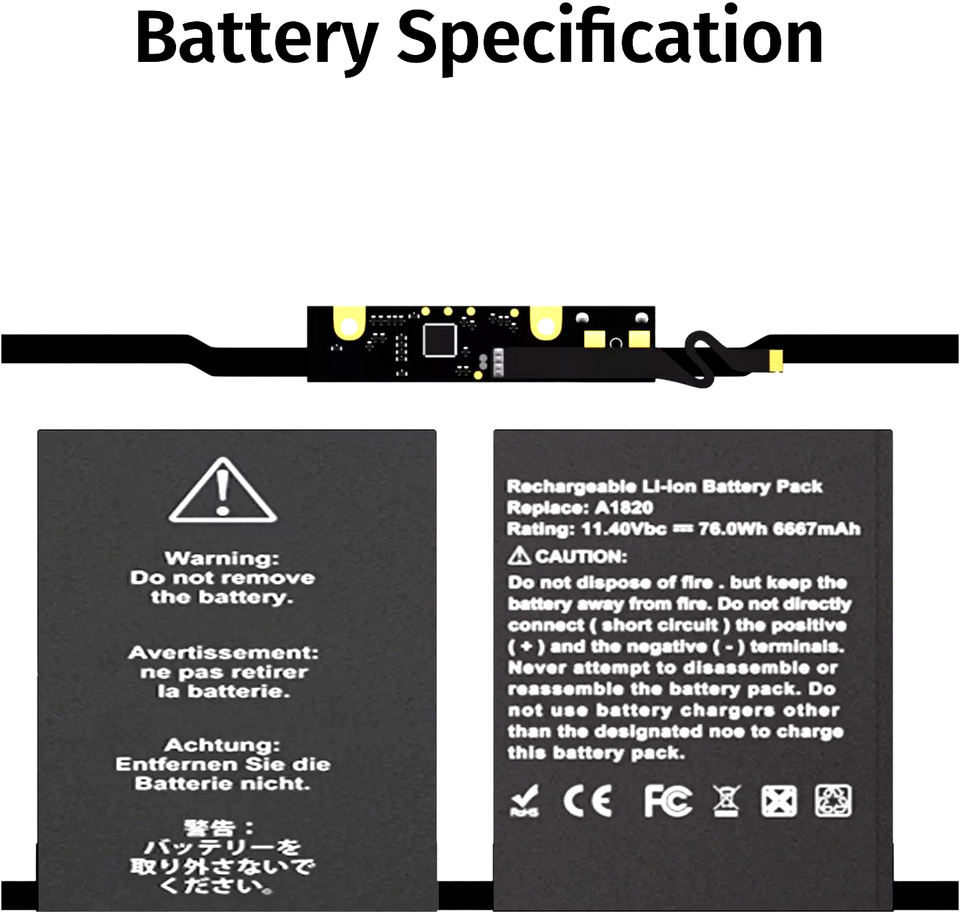 Batería de Repuesto A1707 A1820 para MacBook Pro de 15 pulgadas