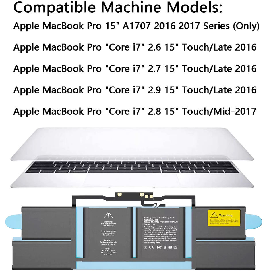 Marca Compatible:Batería de Repuesto A1707 A1820 para MacBook Pro de 15 pulgadas