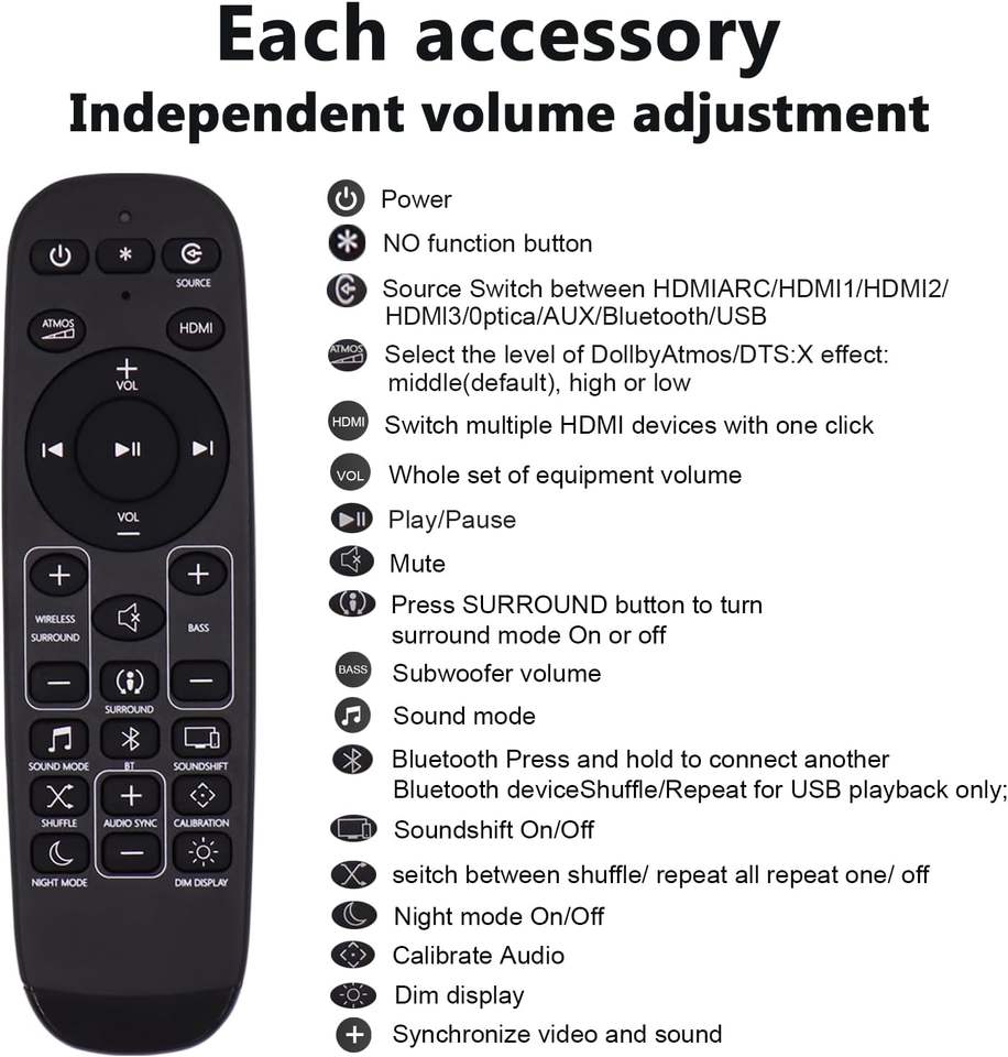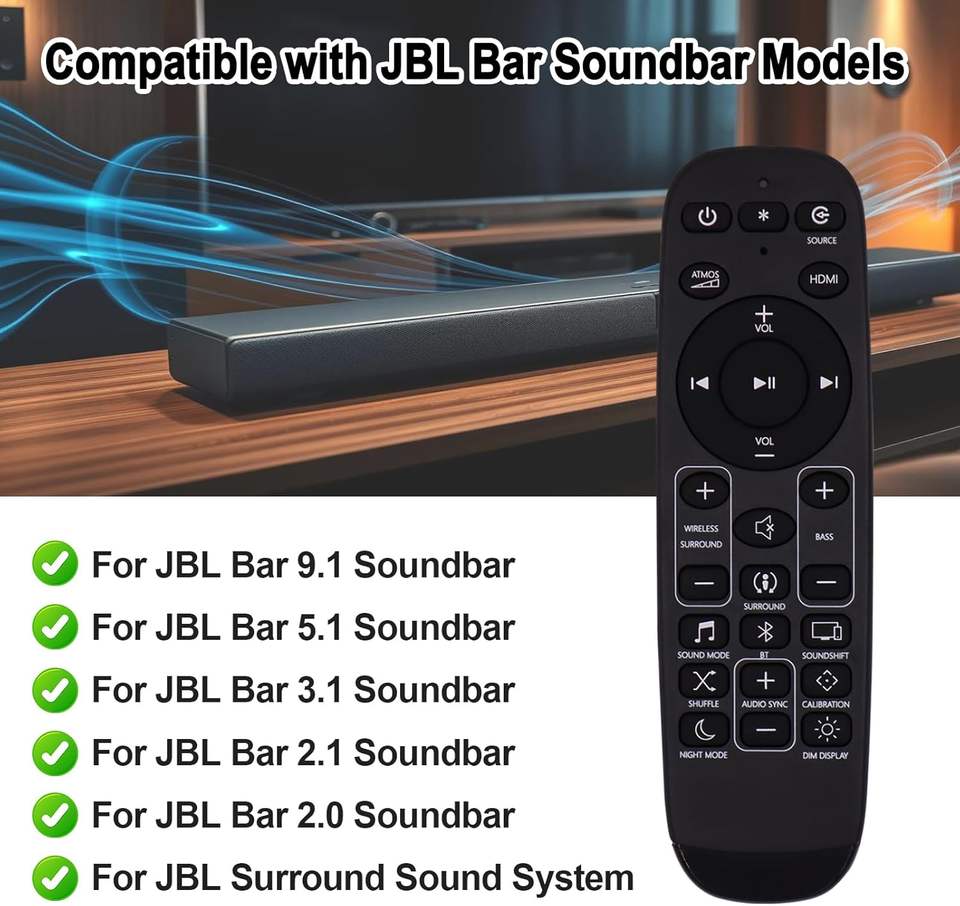 Replacement Remote Control for JBL Bar Compatible with JBL 5.1 9.1 3.1 2.1 2.0 Soundbar and JBL2GBAR51IMBLKAM Soundbar System