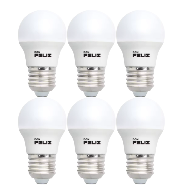 Bombilla LED de Cristal SMD con Sensor Residencial, Forma Redonda A70, 15W, Luz Cálida/Amarilla 3000K, Base Grande E27, Paquete de 6, Don Feliz
