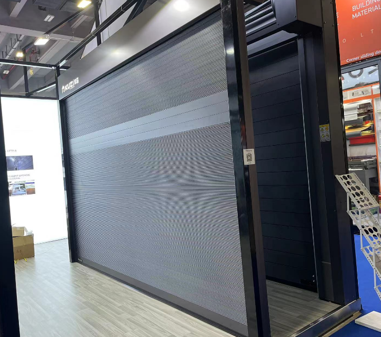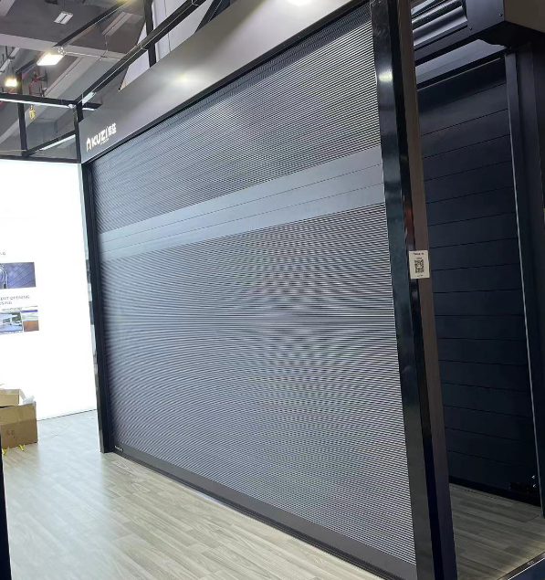Puerta de Garaje Doble Seccional de Aluminio Metálico de Color Oscuro Automática Moderna para Vivienda Residencial
