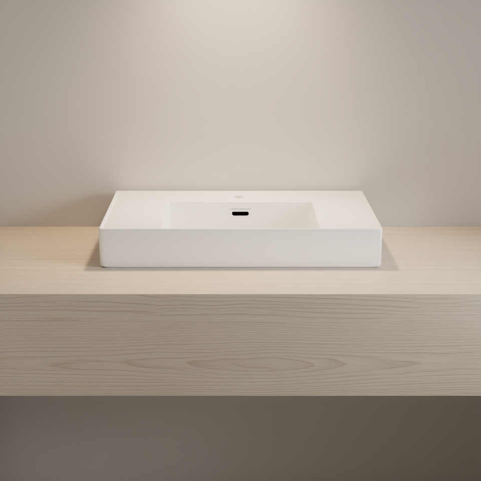 Lavabo de Resina Rectangular de 30 Pulgadas para Montar sobre Encimera, con un Solo Orificio, Acabado Brillante, Diseño Minimalista