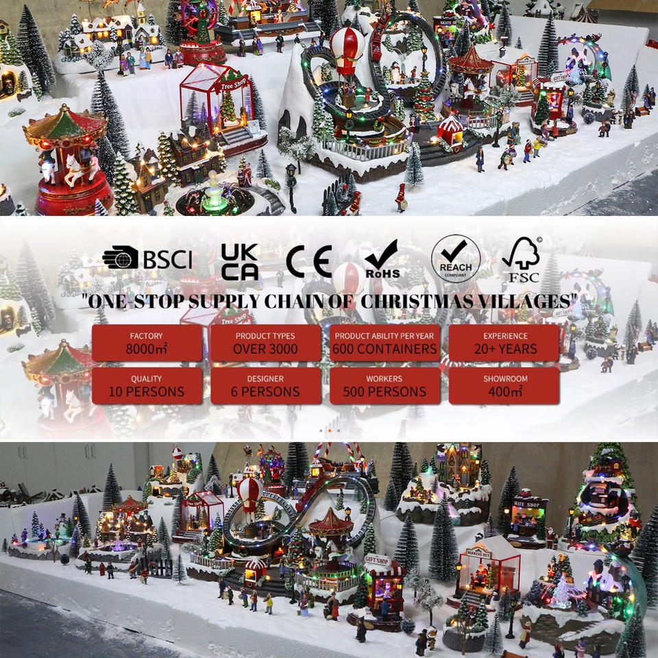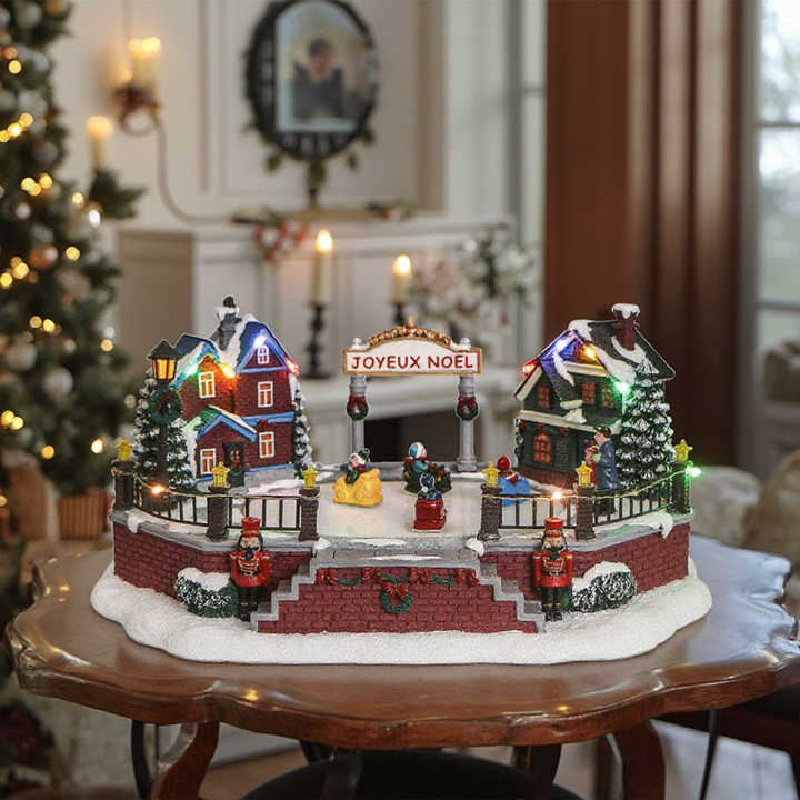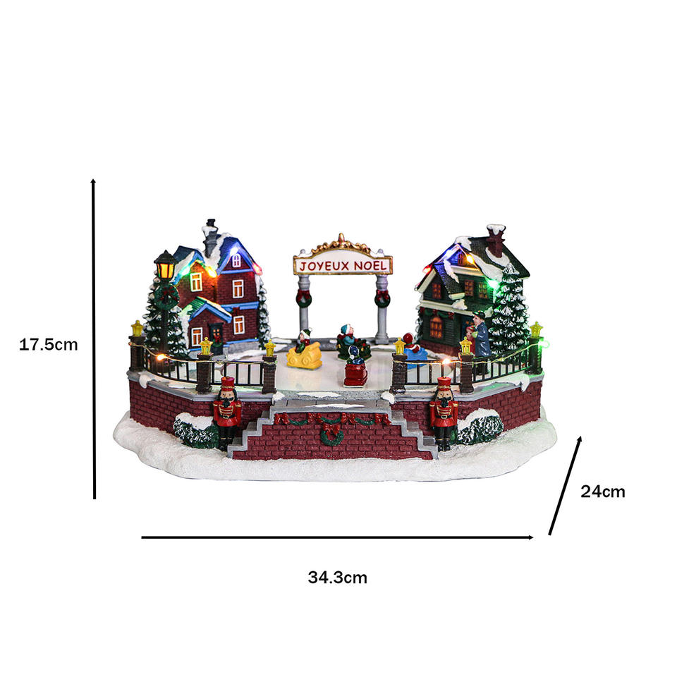 Pueblo Navideño de Resina con Pista de Hielo y Carros Chocones en Movimiento