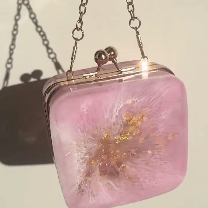 Bolso de resina y acetato con diseño de tortuga, personalizable, disponible en varios colores y con opción de personalización de logotipo.