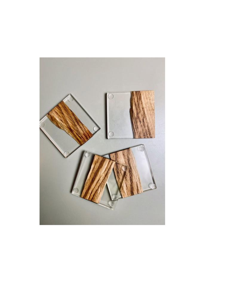 Posavasos de Resina con Base de Madera, Accesorio Moderno para Protección de Mesa, Ideal para Cafeterías y Comedores