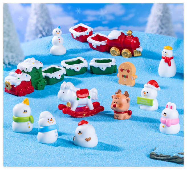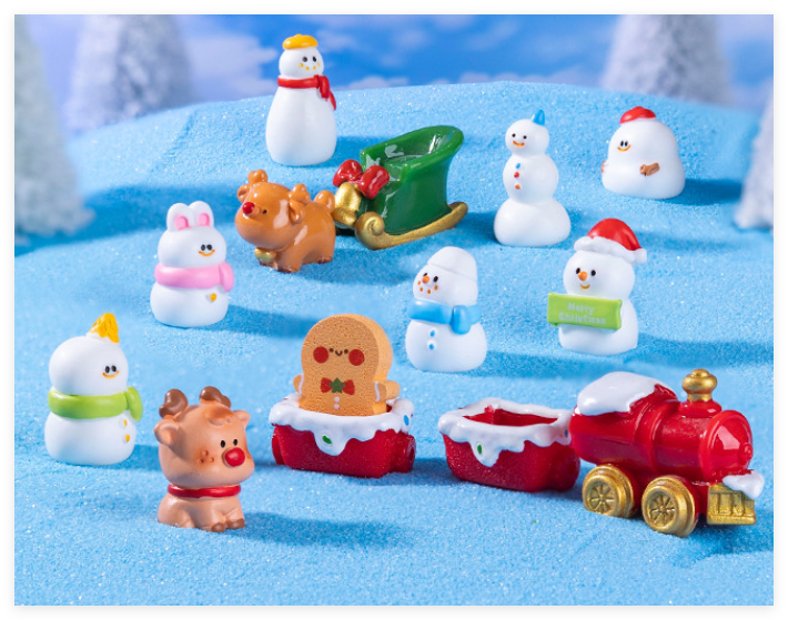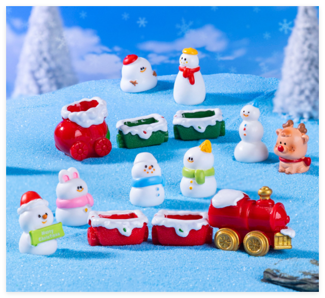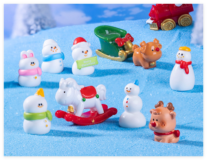 Figura de resina tren ciervo caballo mecedora muñeco de nieve Navidad recuerdo temático ornamento Mini escultura 3D pequeño juguete en miniatura al por mayor