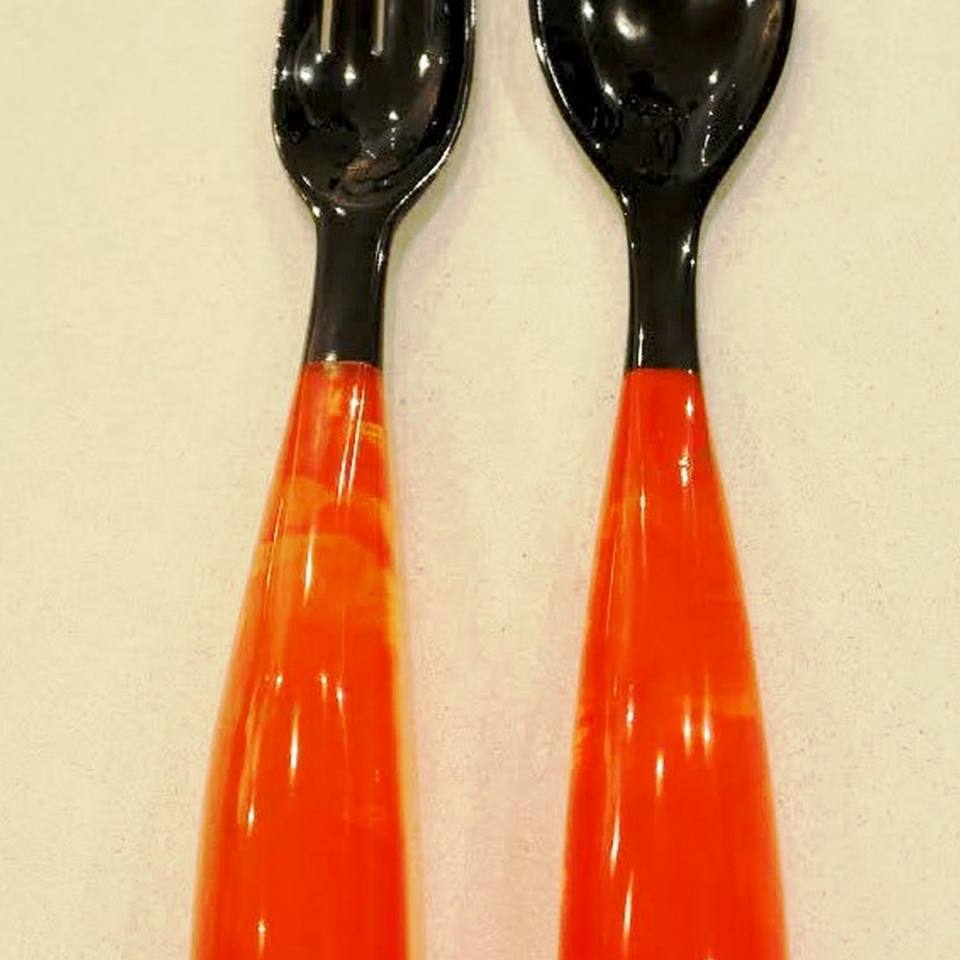 Juego de Cubiertos para Ensalada con Mango de Resina, Madera Natural con 2 Espátulas, Utensilios Hechos a Mano Sostenibles